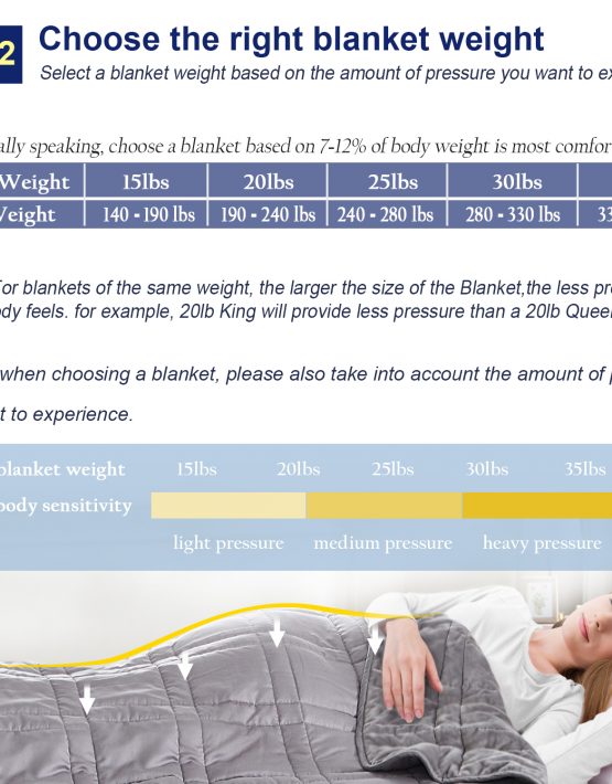 WEIGHT & SIZE: First, select the right size for your bed(King, Queen, Twin). Some sellers have listed the 80″ x 87″ as a king size blanket, it’s not accurate. As shown in the image, it is on top of the king bed. 88″ x 104″ weighted blanket is a real king size for couple. Next, choose the blanket¡¯s weight. 7-12% of body weight will be the most comfortable. The pressure of the blanket makes you feel like you’re being hugged or swaddled.This 88”x104”-35lb blanket provides HEAVY PRESSURE